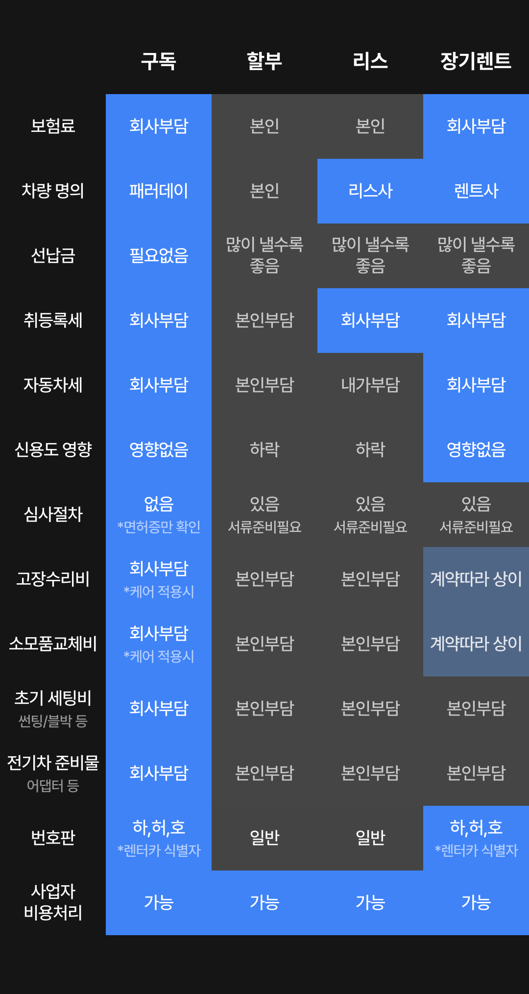 패러데이 구독은 장기렌트, 리스, 할부와 어떻게 다른가요?